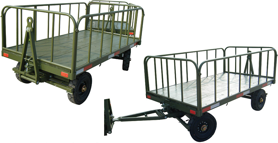 ● 采用500-8實心輪胎4只,雙轉(zhuǎn)盤轉(zhuǎn)向,可列車牽引。