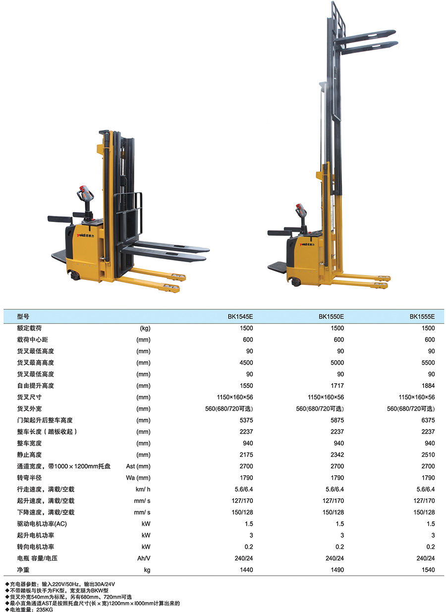 帶電子轉(zhuǎn)式三級門架全電動堆高車
