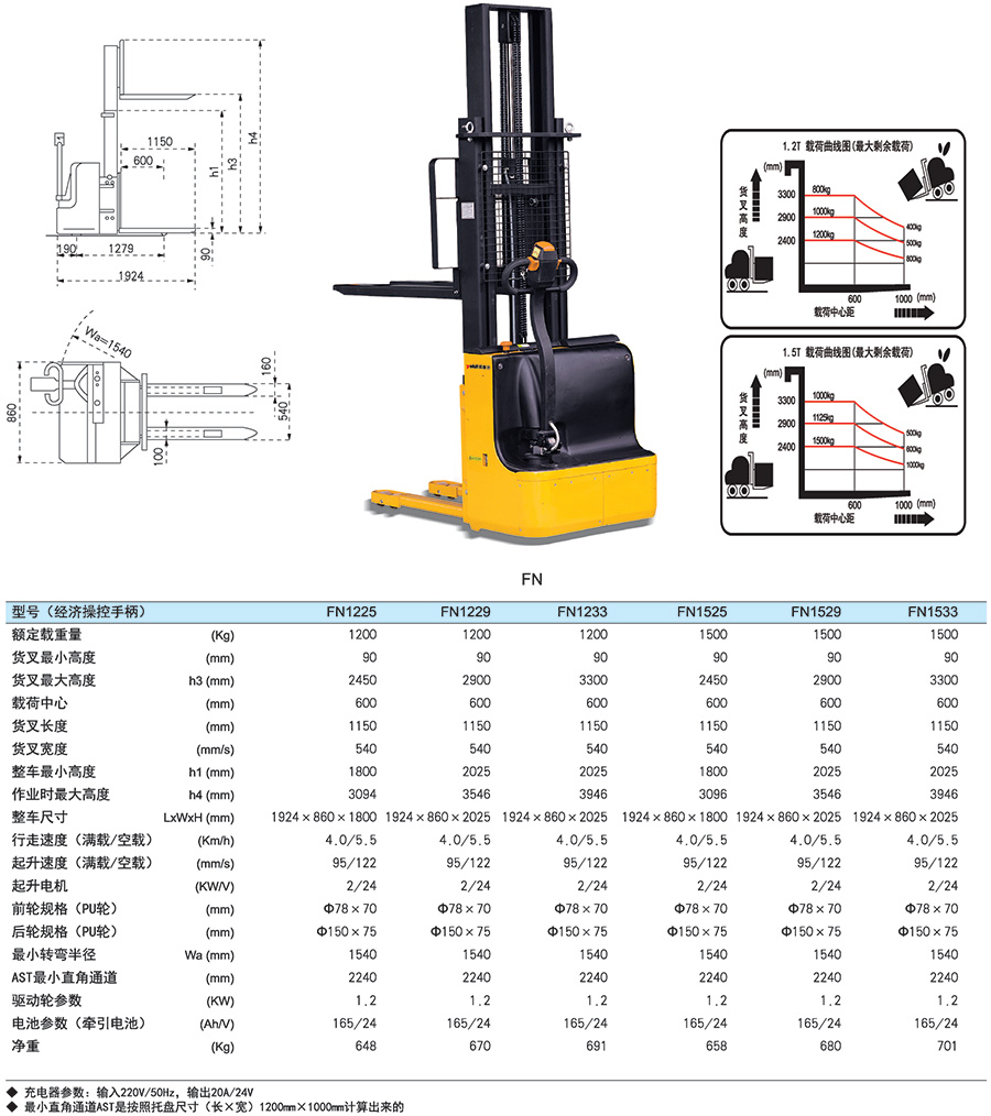 ● 必須嚴格按照堆高車的載荷曲線圖中所允許的剩余載荷進行操作,嚴禁超載使用,確保安全。