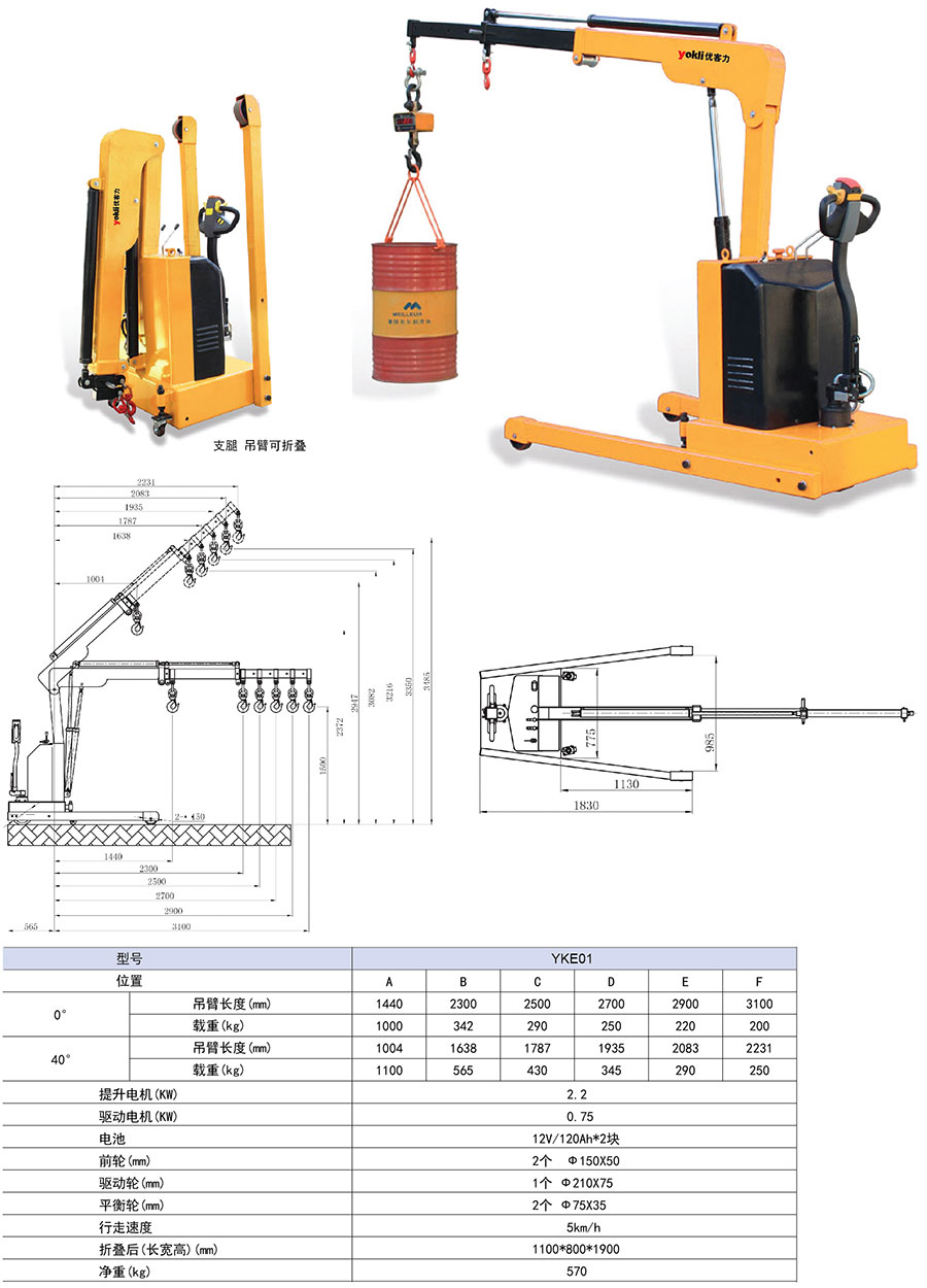 全電動前移式單臂吊機YKH01