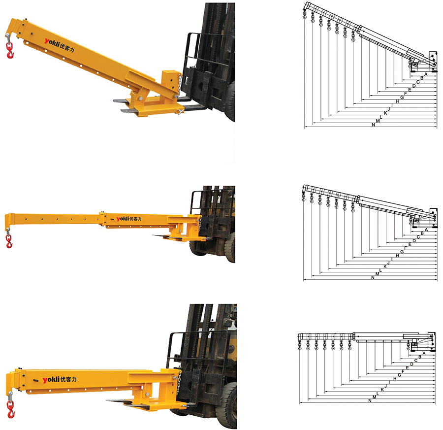 ● 可調(diào)伸縮超長吊臂,適用于叉車不易進入的區(qū)域進行操作,特別適用于用叉車吊裝集裝箱。