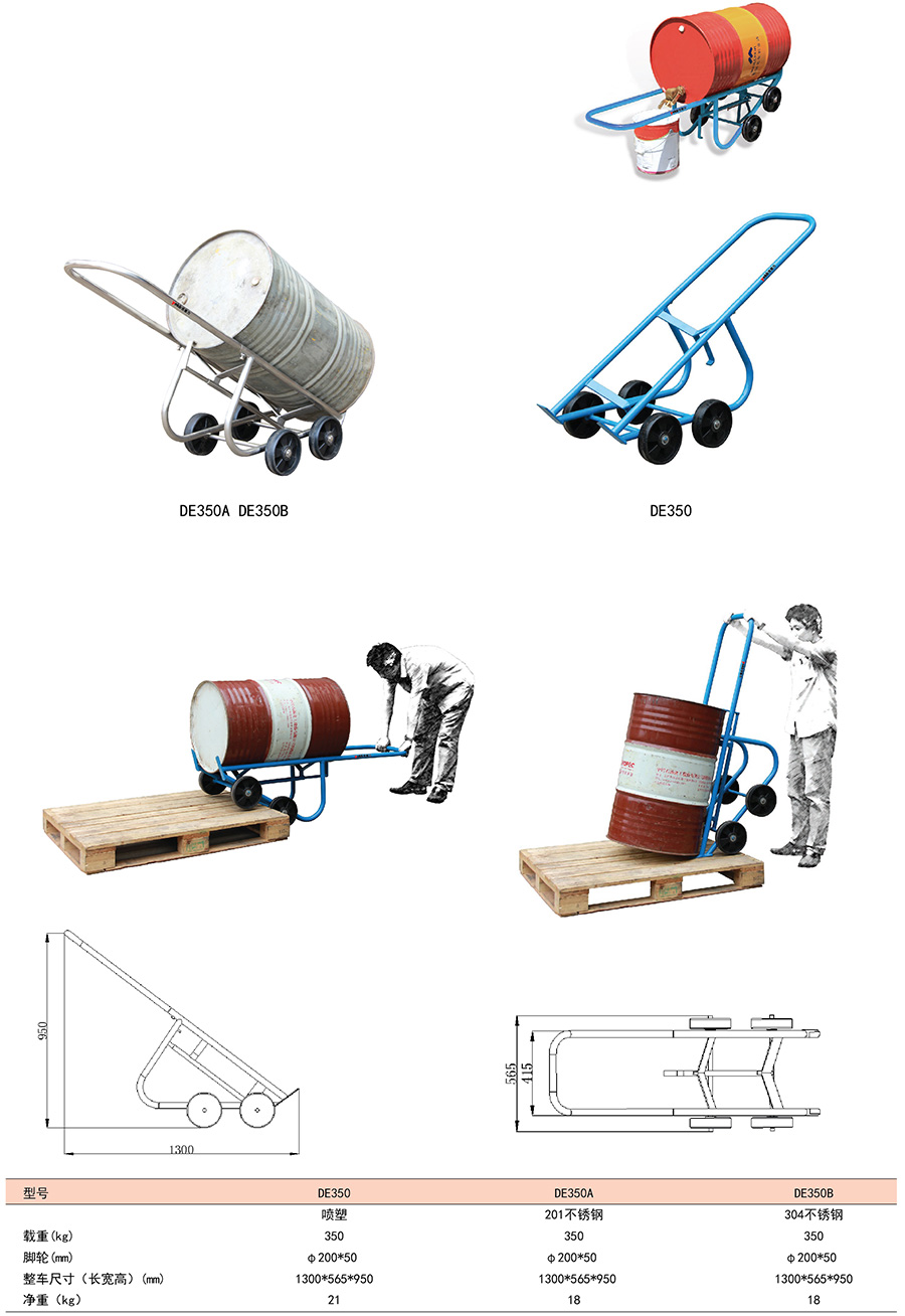 ● 三個支點(diǎn)結(jié)構(gòu),能夠搬運(yùn)托盤上的油桶。